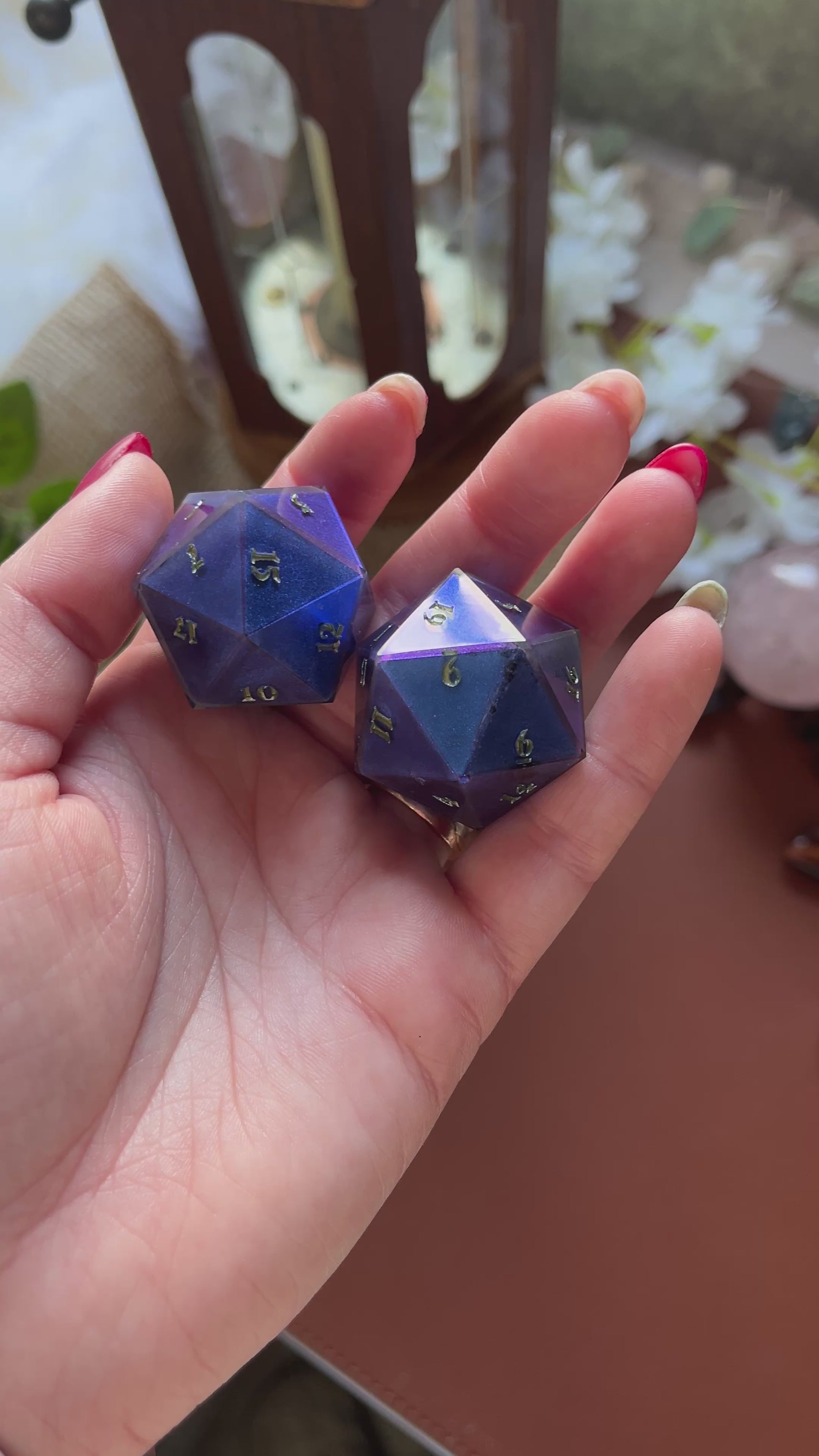 Deze prachtige, handgemaakte dobbelsteen is perfect voor liefhebbers van tabletop RPG’s, bordspellen en verzamelaars. Elk stuk is zorgvuldig gegoten, geschuurd en gepolijst voor een unieke en hoogwaardige afwerking. Gemaakt van hoogwaardig hars, ink en kameleon poeder.