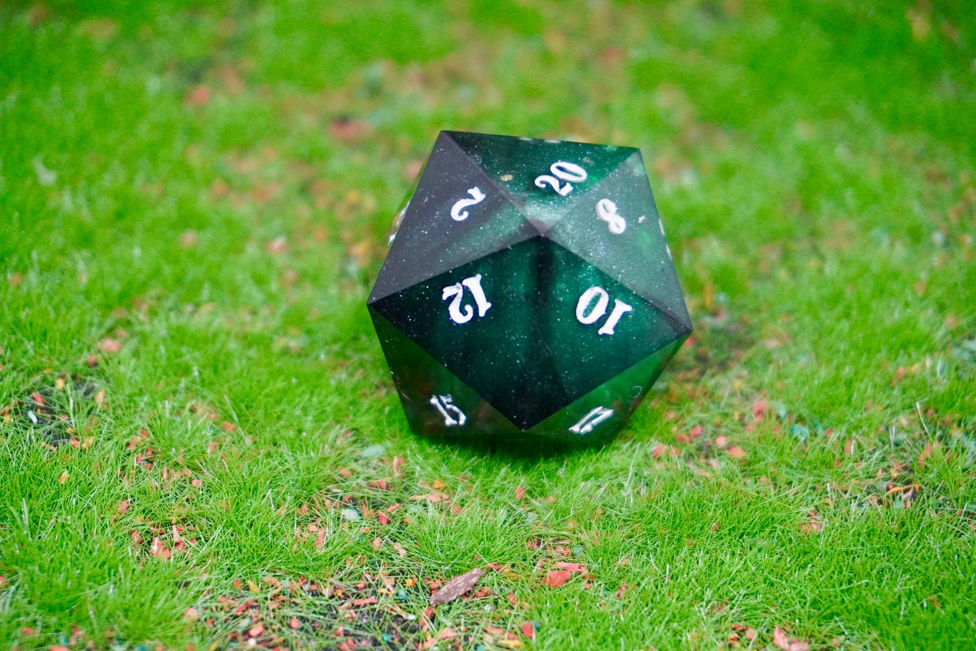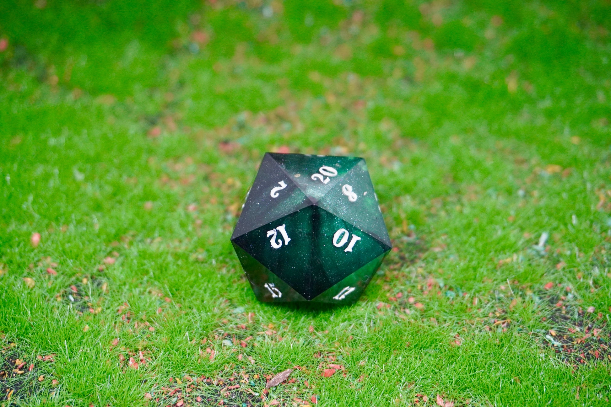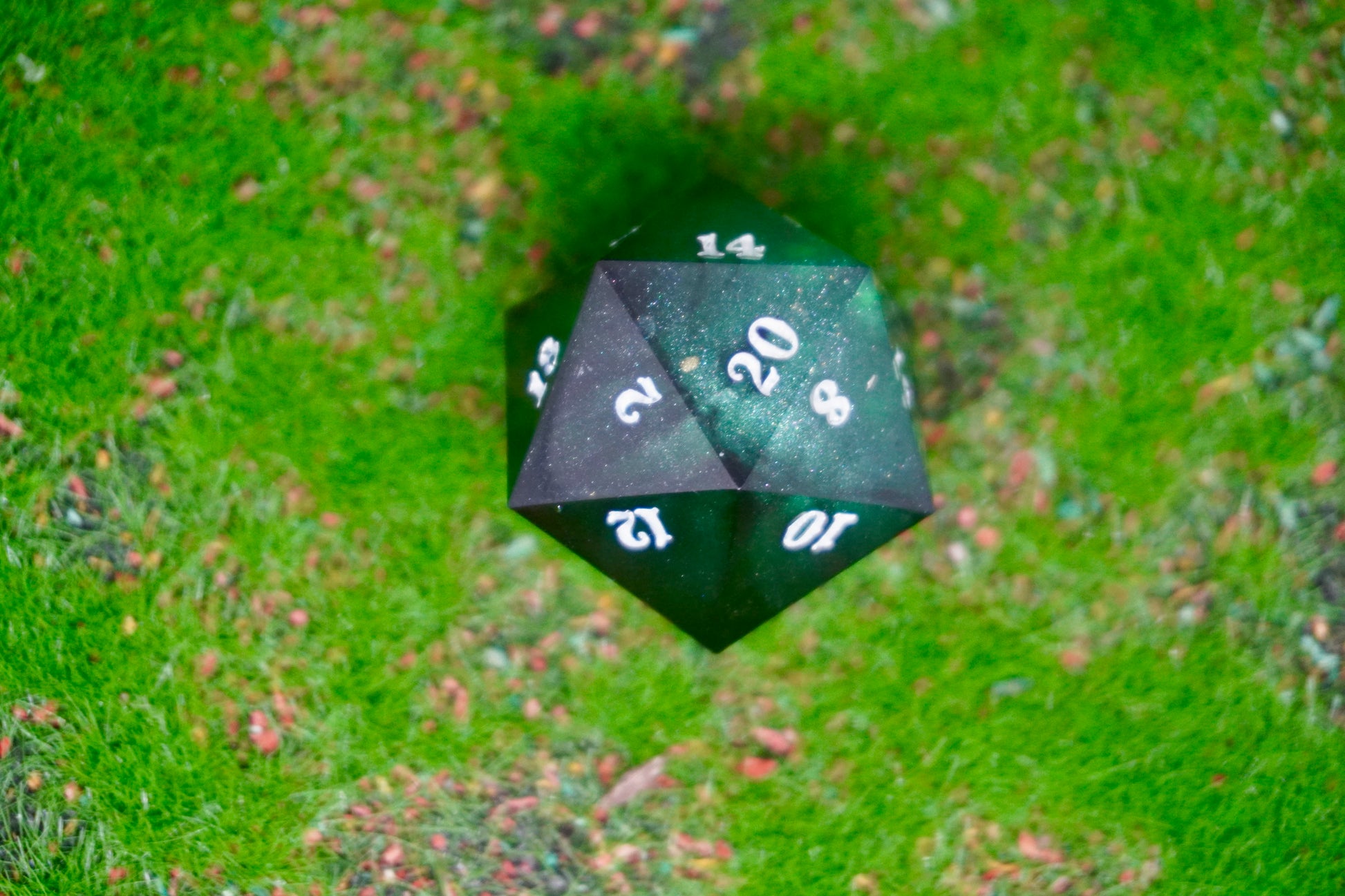 Deze prachtige, handgemaakte dobbelsteen is perfect voor liefhebbers van tabletop RPG’s, bordspellen en verzamelaars. Elk stuk is zorgvuldig gegoten, geschuurd en gepolijst voor een unieke en hoogwaardige afwerking. Gemaakt van hoogwaardig hars, fijne glitters en ink.