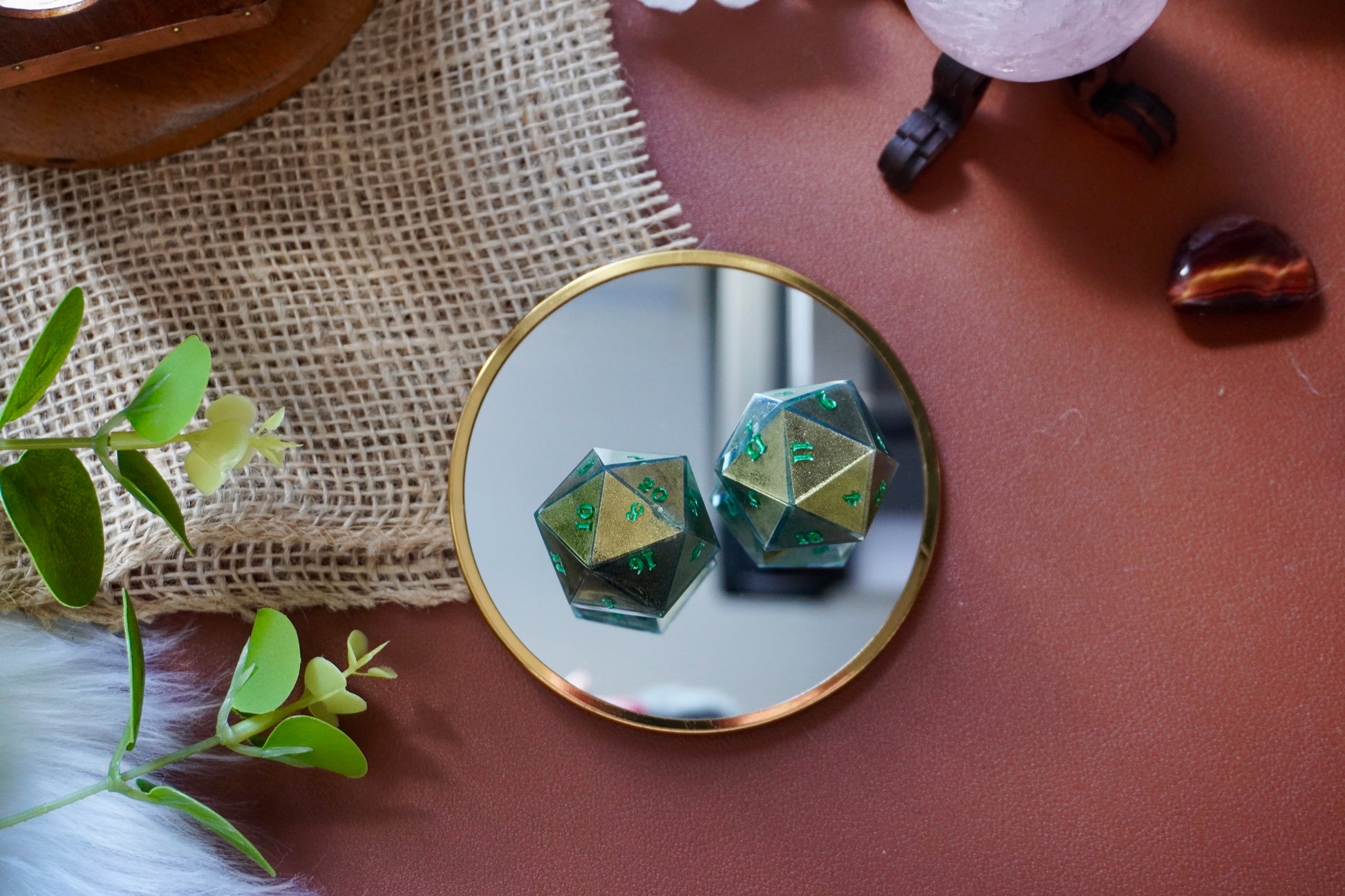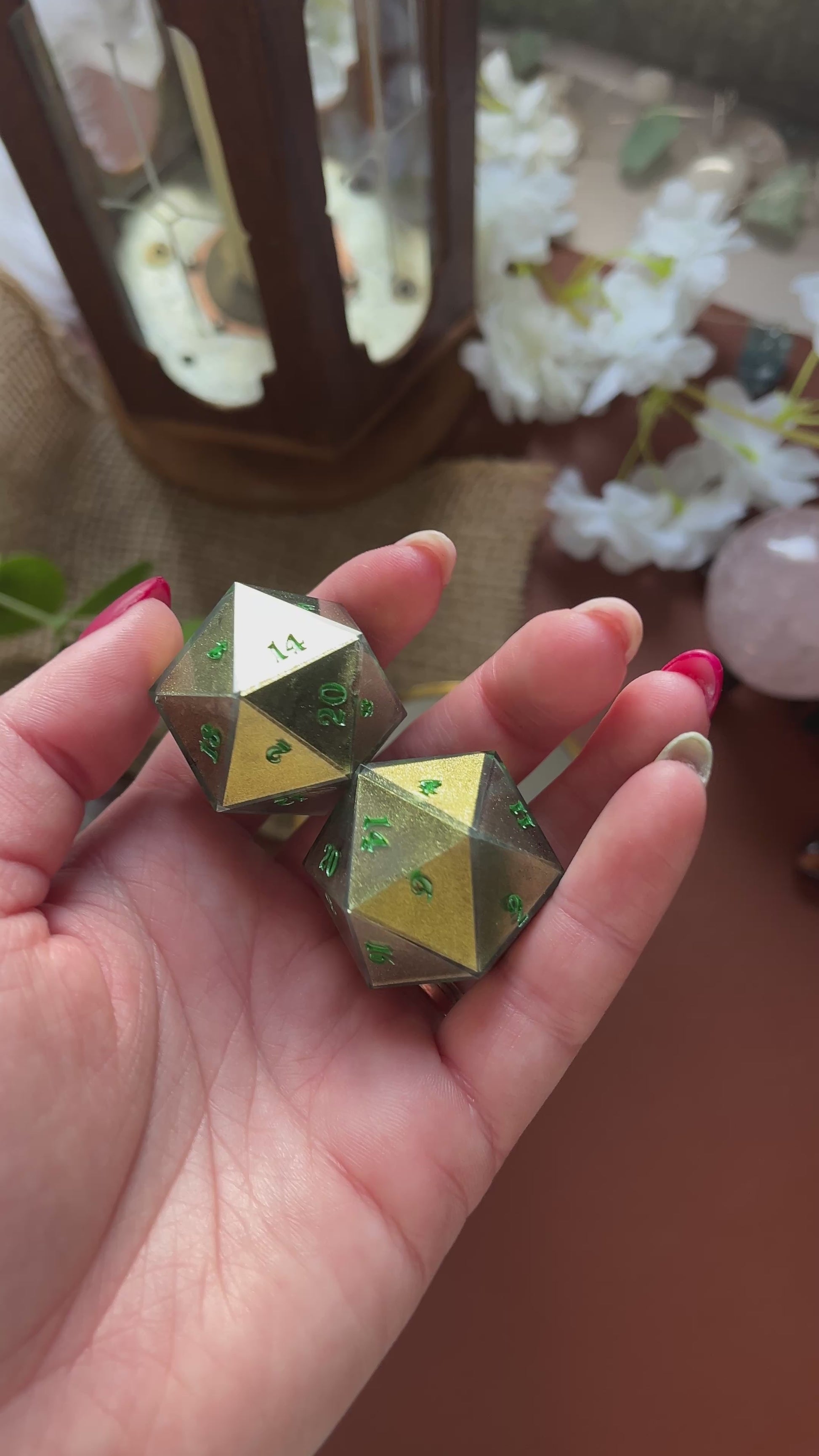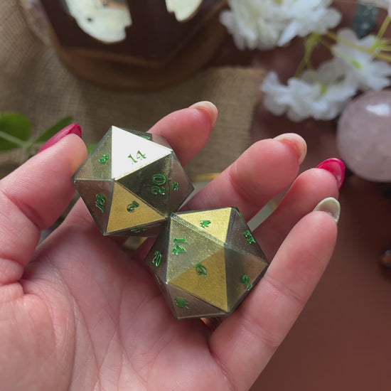 Deze prachtige, handgemaakte dobbelsteen is perfect voor liefhebbers van tabletop RPG’s, bordspellen en verzamelaars. Elk stuk is zorgvuldig gegoten, geschuurd en gepolijst voor een unieke en hoogwaardige afwerking. Gemaakt van hoogwaardig hars, ink en kameleon poeder.
