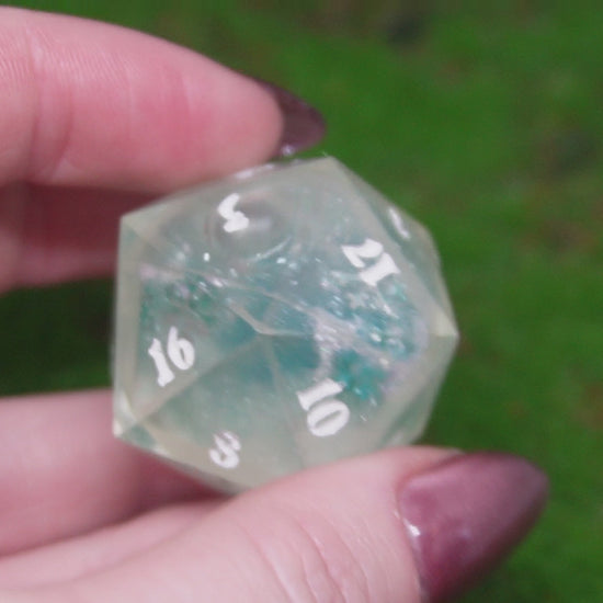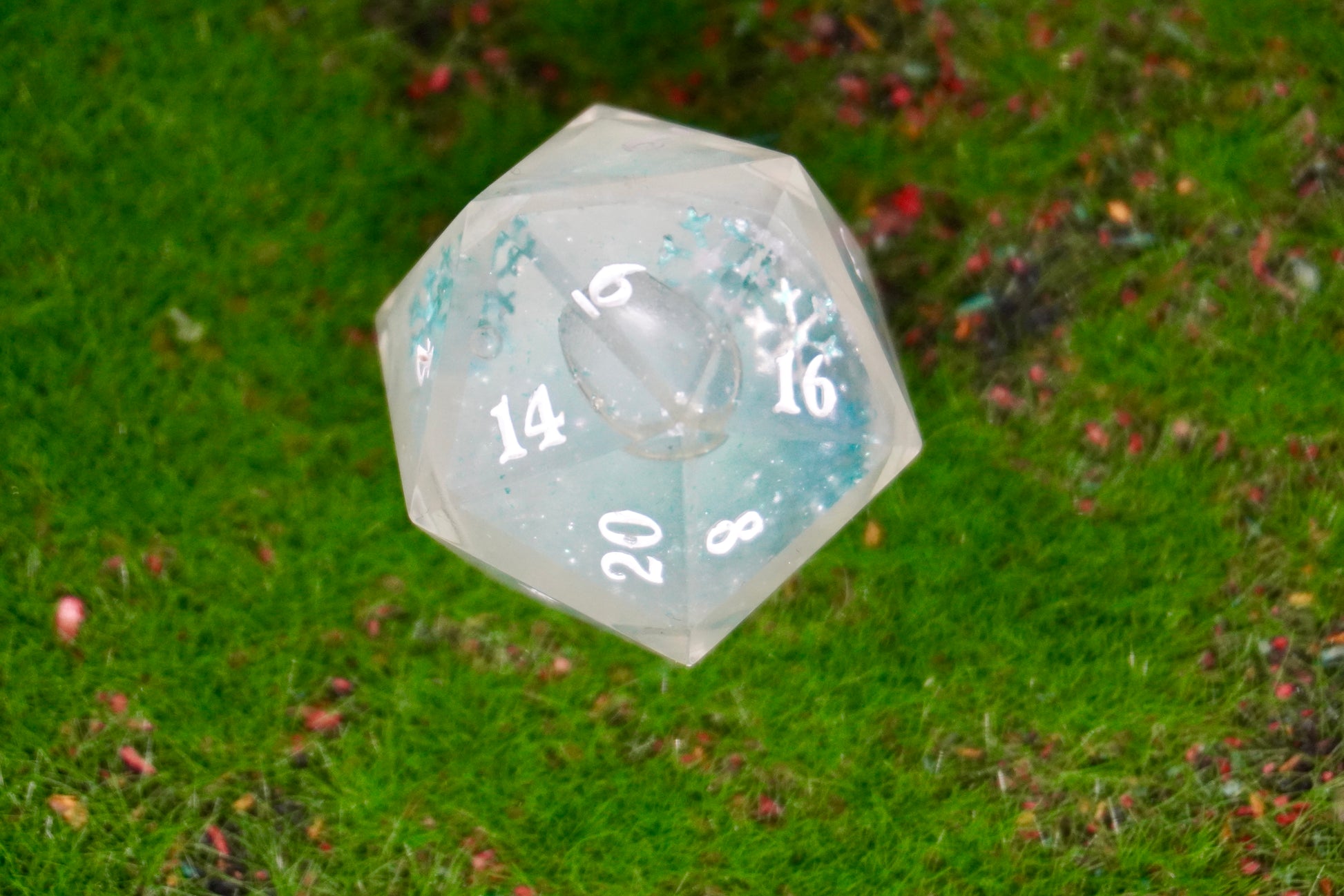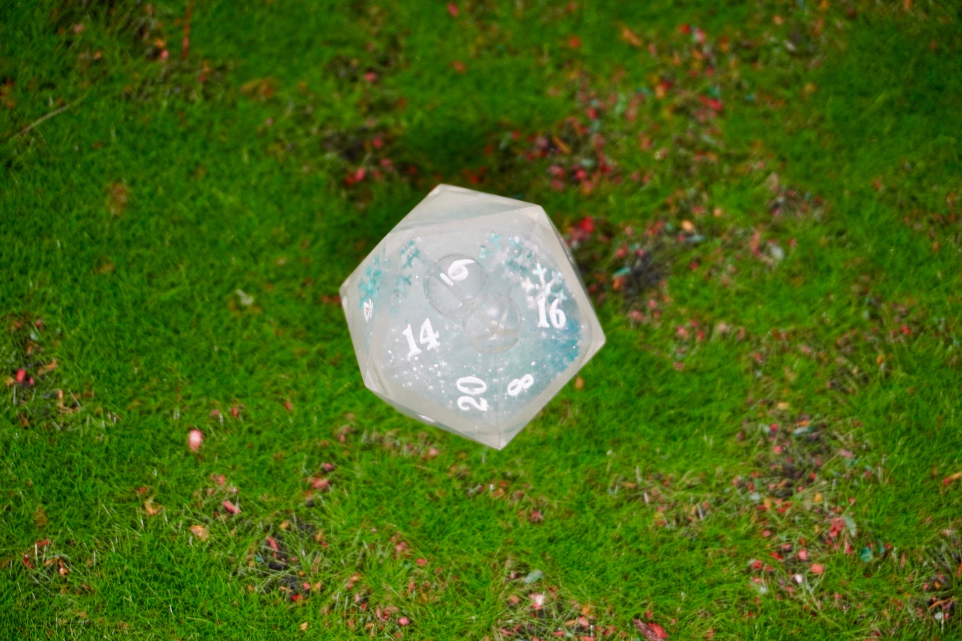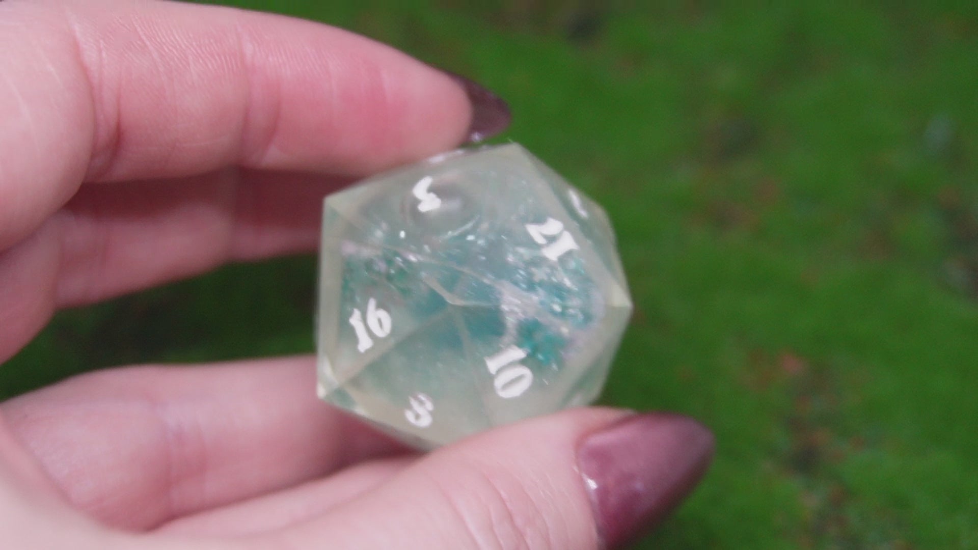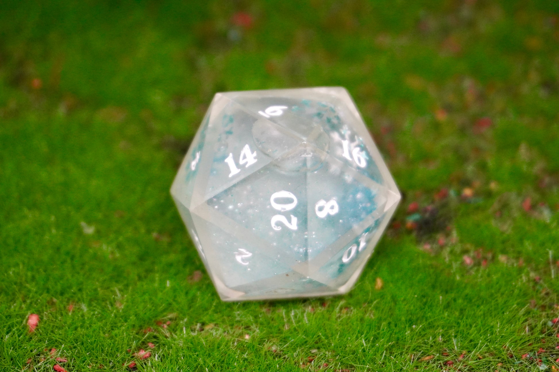 Deze prachtige, handgemaakte dobbelsteen is perfect voor liefhebbers van tabletop RPG’s, bordspellen en verzamelaars. Elk stuk is zorgvuldig gegoten, geschuurd en gepolijst voor een unieke en hoogwaardige afwerking. Gemaakt van hoogwaardig hars, fijne glitters en ink.