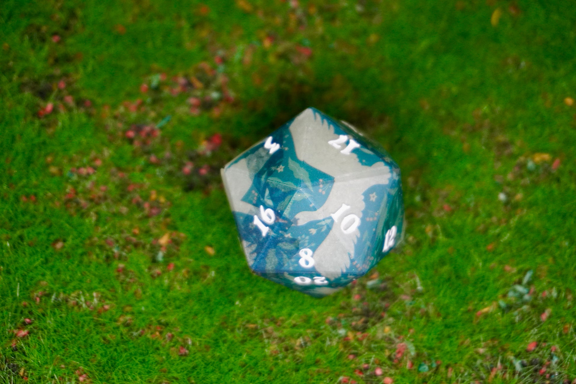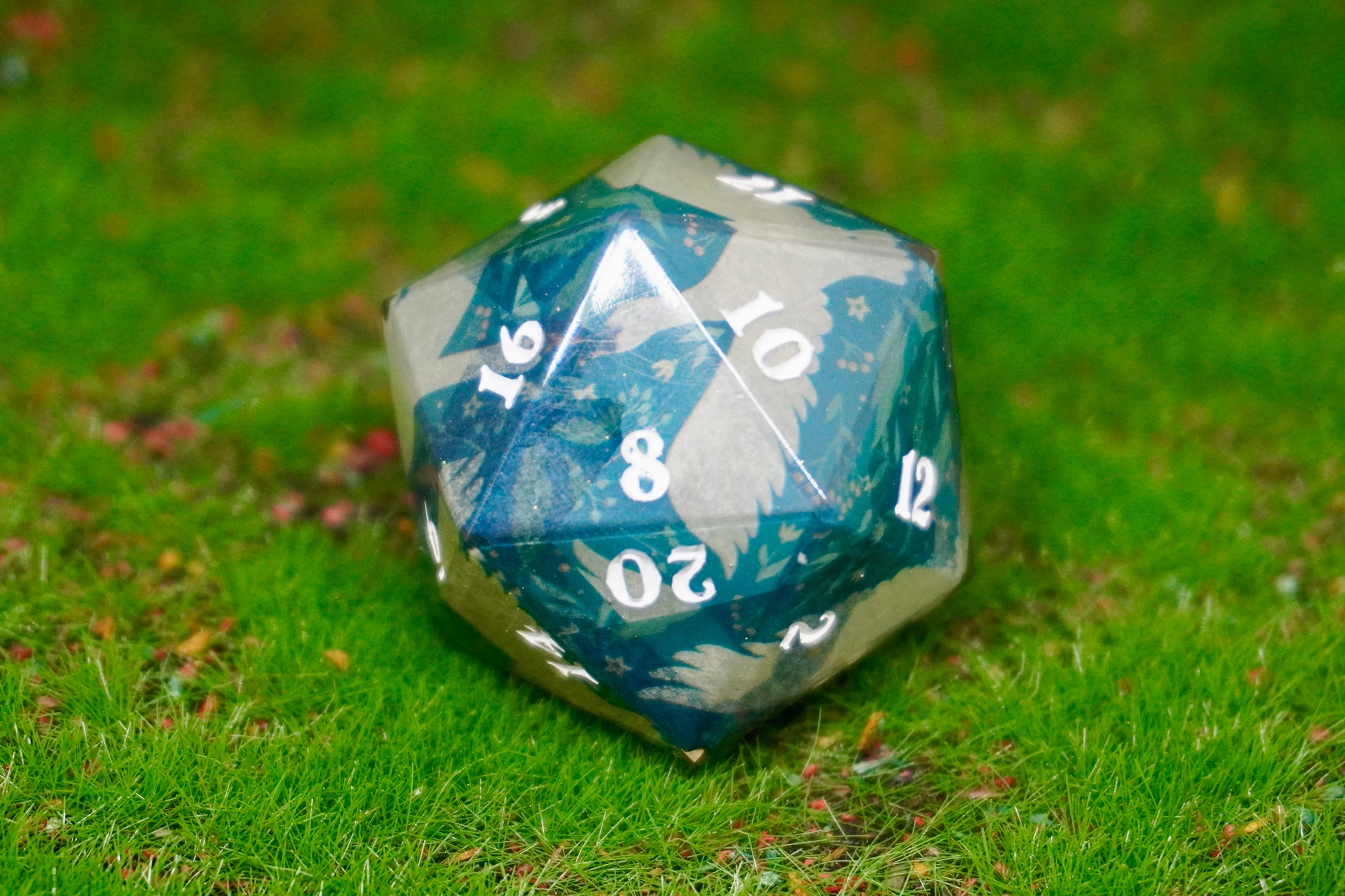 Deze prachtige, handgemaakte dobbelsteen is perfect voor liefhebbers van tabletop RPG’s, bordspellen en verzamelaars. Elk stuk is zorgvuldig gegoten, geschuurd en gepolijst voor een unieke en hoogwaardige afwerking. Gemaakt van hoogwaardig hars, fijne glitters en ink.